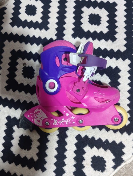 کفش اسکیت سایز 26 تا 28 برای وزن حداکثر تا 20 کیلو دخترانه برند Oxelo (استوک کمی کار کرده) دو اسلاید آخر عکس محصول بعد از کار کرد