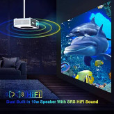 بلندگوی استریو دوگانه 10 واتی داخلی با جلوه صوتی SRS، مجهز به صفحات ارتعاشی اضافی برای افزایش عملکرد باس. همچنین، این پروژکتور وایفای 1080p با درایور رمزگشایی صدای AC3، از پخش فرمت صوتی AC3 پشتیبانی میکند که امتیازی برای دوستداران موسیقی است.