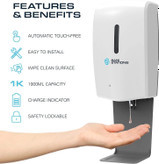 دستگاه پخش خودکار و با ظرفیت بالای SANI PRO 100ML برای مناطق پر رفت و آمد ایدهآل است. این دستگاه پخش بدون نیاز به لمس با ظرفیت 1000 میلیلیتر، فناوری پیشرفته و قابل اعتمادی را با هم ترکیب میکند و آن را به یک سیستم ضدعفونی دست با نگهداری آسان تبدیل میکند. دستگاه پخش SANIPRO از فناوری حسگر هوشمند و بدون دردسر برای تشخیص دستها و توزیع خودکار مقدار بهینه ژل یا فوم ضدعفونی کننده دست استفاده میکند. این دستگاه با باتری کار میکند و تنها با توان 0.5 وات کار میکند. عمر باتری برای حدود 70000 بار استفاده کافی است. یک پنجره برای نظارت بر سطح مایع و پر کردن آسان دستگاه در زیر یک پوشش قفلدار تعبیه شده است. لطفاً توجه داشته باشید: باتریها و ضدعفونی کننده دست جداگانه فروخته میشوند.