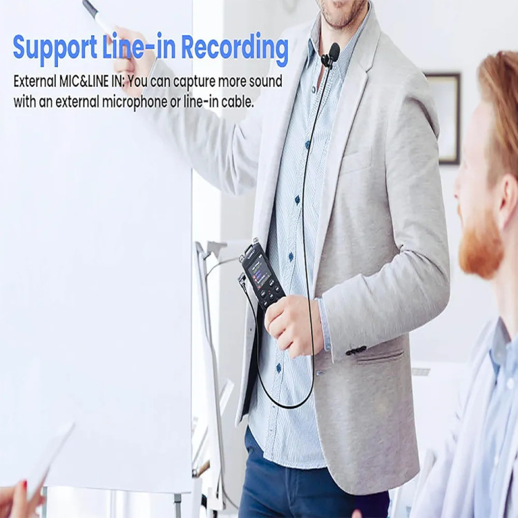 انتقال آسان فایل به کامپیوتر و دانلود موسیقی: دستگاه ضبط را به راحتی شارژ کنید یا ضبطها را به راحتی از طریق کابل میکرو USB ارائه شده به کامپیوتر منتقل کنید. میتوانید فایلهای ضبط شده را پخش، به اشتراک بگذارید، حذف و تغییر نام دهید، موسیقی دانلود کنید و موارد دیگر را در کامپیوتر خود انجام دهید. هدیهای مفید برای دانشآموزان، اساتید، معلمان، تاجران و هر کسی که عاشق ضبط است. ➎ چند منظوره و ارزش عالی در برابر قیمت و قابل حمل: ضبط کننده صدای جیبی با تمام عملکردهای مورد نظر شما کار میکند، تکرار A-B / پخش دورهای فیش هدفون استاندارد 3.5 میلیمتری به عنوان پخش کننده MP3 بلندگوی داخلی پشتیبانی از 28 زبان ضبط زمانبندی شده فرمتهای MP3 / WMA/PLAC/APE پخش با سرعت متغیر حالت AVR حالت مانیتور محافظت از رمز عبور زمانبندی شده ضبط خودکار تراشه کاهش نویز DSP برای انتقال فایلها