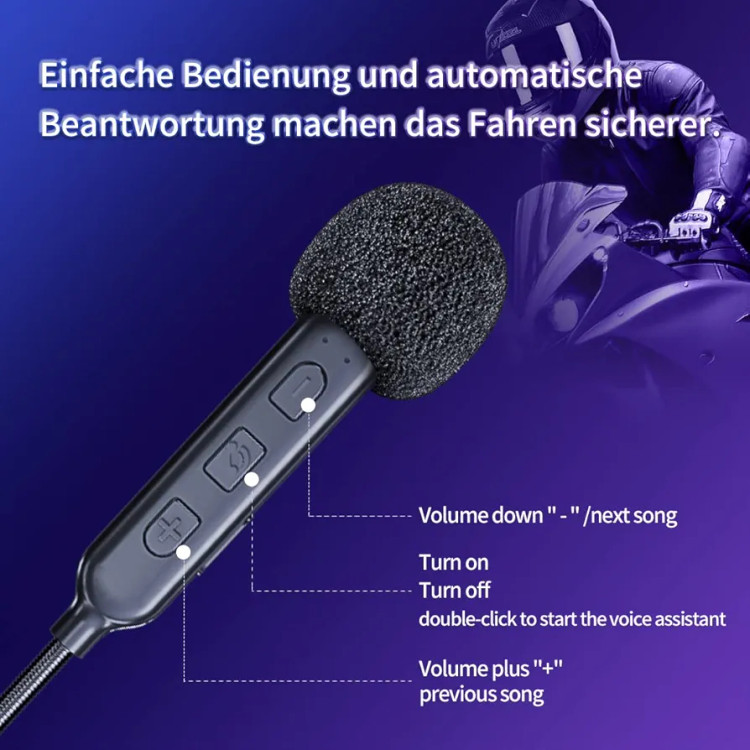 کیفیت صدای شفاف: تراشه حذف نویز DSP، که نویز محیط مانند باد و صدای موتور را کاهش میدهد. هدفونهای بلندگوی Hi-Fi صدای شفاف و موسیقی استریو را با سرعت بالا به شما ارائه میدهند. با دسترسی به دستورالعملهای صوتی هوشمند، میتوانید از طریق شماره تلفن همراه تماس برقرار یا دریافت کنید، به موسیقی و دستورالعملهای صوتی GPS گوش دهید و از لذت مسابقه لذت ببرید. بلوتوث 5.0 جفت شدن کامل خودکار و فاصله موثر 20 متر