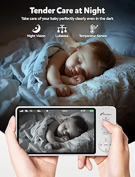 دید در شب فعال - این یک مانیتور کودک با کیفیت بالا است که دارای قابلیت چرخش، زوم و شیب از راه دور است. علاوه بر این، ما فناوری مادون قرمز را نصب کردهایم که امکان دید در شب را فراهم میکند. چراغهای LED مادون قرمز داخلی تضمین میکنند که وضوح تصویر در شب برای نظارت عالی است. ما همچنین یک مانیتور حرارتی داریم که دمای اتاق را به شما نشان میدهد و به کودک شما اجازه میدهد ۲۴ ساعته و ۷ روز هفته راحت و ایمن بماند.
