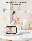 اتصال چند دوربین: این مانیتور ویدیویی کودک با دوربین و دید در شب میتواند تا 2 دوربین (دوربینهای اضافی جداگانه فروخته میشوند) را به هم متصل کند و به راحتی روی دیوار یا مکانهای دیگر نصب میشود.
