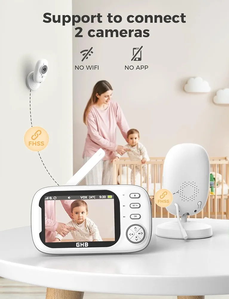 دوربین مراقبت کودک مانیتور دار با وای فای داخلی برند GHB مدل ABM600 با مانیتور 3.5 اینچی و کیفیت تصویر HD