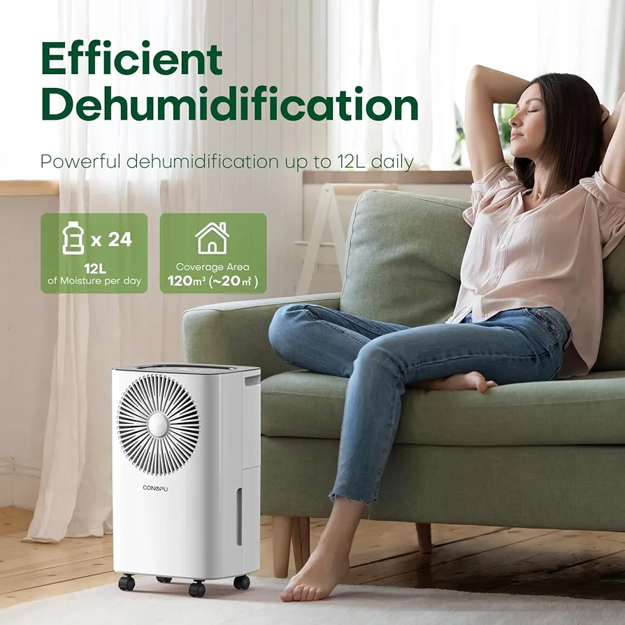دستگاه رطوبت گیر CONOPU با طراحی مدرن و کارایی بالا، بهترین راه حل برای کنترل رطوبت محیط و جلوگیری از مشکلات ناشی از آن است. این دستگاه با حذف رطوبت اضافی هوا، از ایجاد کپک، بوی نامطبوع، و آسیب به وسایل خانه جلوگیری می کند و به حفظ سلامتی افراد خانواده نیز کمک می کند.