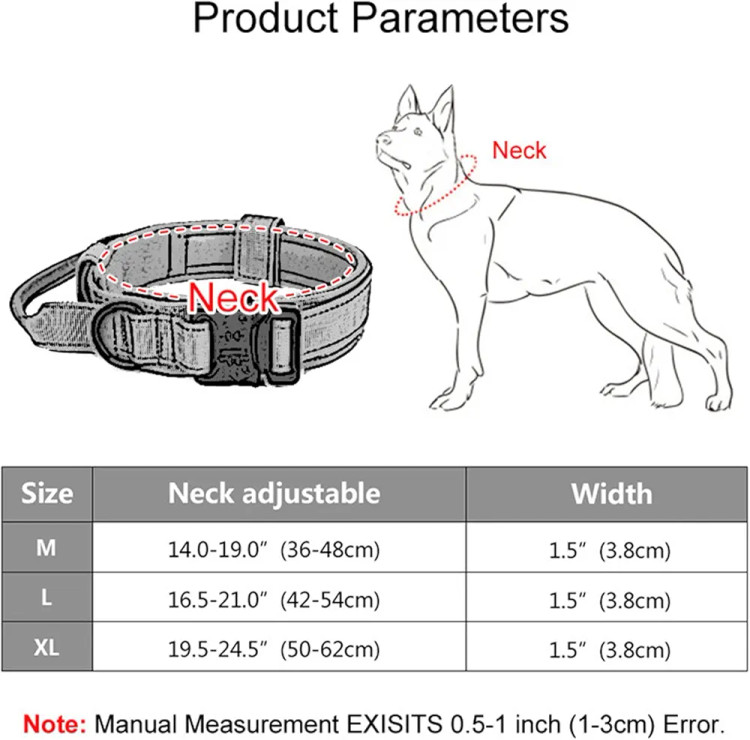 【طراحی کاربردی】 — قلاده نظامی سگ دارای دسته کنترل مخصوص است که به شما کمک میکند سگ خود را بهتر کنترل کنید. مناسب سگهای متوسط و بزرگ بوده و برای آموزش، گشتزنی، پیادهروی و شکار ایدهآل است.