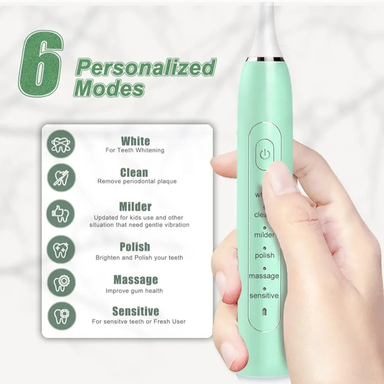 【6 تنظیمات】 - ما این مسواک برقی کودکان را با 6 حالت: سفید، تمیز، ملایم تر، پولیش، ماساژ و حساس ارتقا می دهیم. ارتقاء حالت ملایمتر جدید، لرزش ملایم برای بهبود تجربه مسواک زدن کودکان، همچنین برای موقعیتهای خاص که بزرگسالان به لرزش ملایمتری نیاز دارند، مناسب است. حالت پولیش دندان های شما را از طریق ضربه های قوی درخشان می کند. بزرگسالان یا بچهها میتوانند لباس حالت را برای تمیز کردن روزانه پیدا کنند.