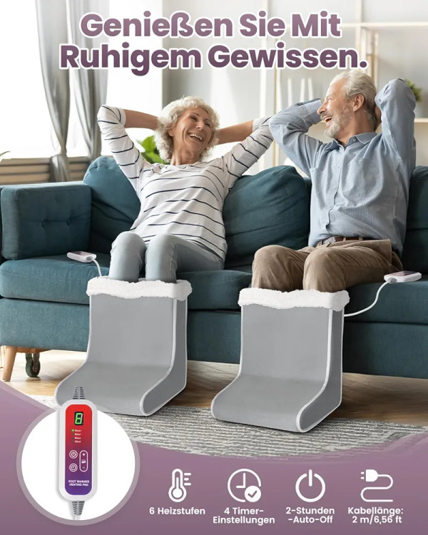 گرمکن پای برقی Qfun، گرمکن سریع پا با 6 سطح دما و 4 تایمر، کفش گرمکن، گرمکن پای بزرگسال با خاموش شدن خودکار، گرمکن پای برقی قابل شستشو، گرم شدن بیش از حد