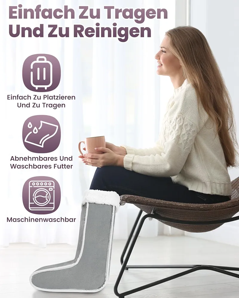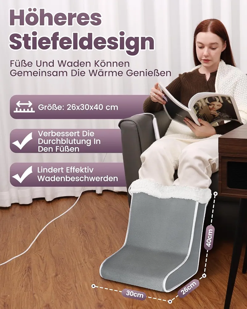 طراحی بلندتر برای حداکثر گرما در مقایسه با سایر گرمکنهای پا، گرمکنهای پای ما مجهز به یک ساق بلندتر هستند که نه تنها پاهای شما را گرم میکند، بلکه حداقل نیمی از ساق پا را نیز پوشش میدهد و سردی پاها، درد عضلات و خستگی را تسکین میدهد. چه روی مبل دراز کشیده باشید و چه پشت میز، گرمکنهای پای Qfun حداکثر گرما و راحتی را به شما ارائه میدهند.