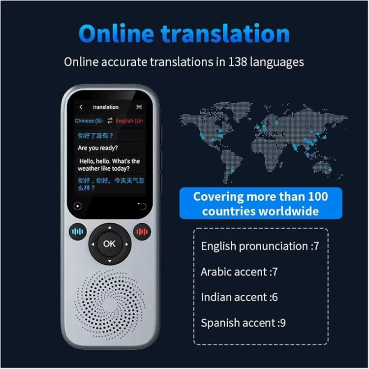 دستگاه مترجم هوش مصنوعی S20 از ۱۳۸ زبان پشتیبانی میکند. مترجم هوشمند ChatGPT، دستگاه ترجمه متن با ضبط صدا در لحظه