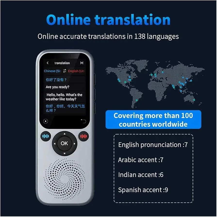 طراحی قابل حمل، استفاده در هر زمان و هر مکان: جمع و جور و سبک، حمل آسان، مناسب برای سناریوهای مختلف مانند سفر و سفرهای کاری، حل مشکلات زبانی در هر زمان و هر مکان.