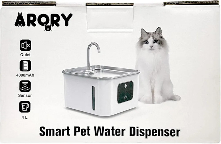 ظرف آب اتوماتیک ۴ لیتری ARORY با سنسور هوشمند، تامین مداوم آب تازه برای سگ و گربه.